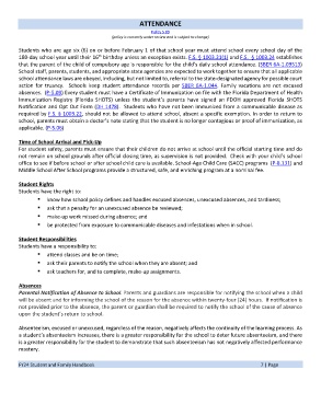 absences. (P-5.09) Every student must have a Certificate of Immunization on file with the Florida Department of Health