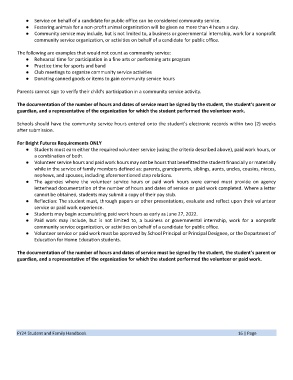 ● Community service may include, but is not limited to, a business or governmental internship, work for a nonprofit