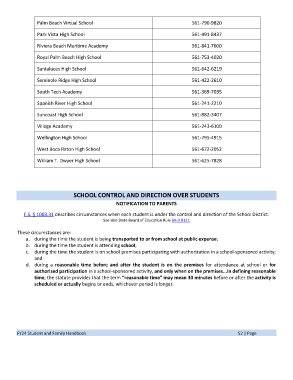 F.S. § 1003.31 describes circumstances when each student is under the control and direction of the School District.