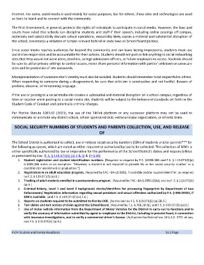 time or location while posting to a social media site, students will be subject to the behavioral standards set forth in the