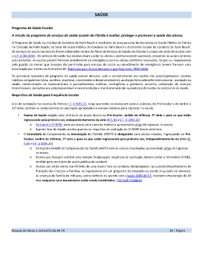transmissíveis, consultas aos pais/responsável e recomendação e monitoramento de suspeita/confirmação de problemas de saúde.