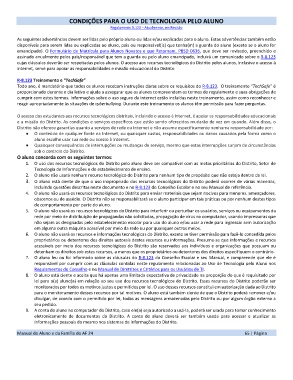 cujas cláusulas deverão ser respeitadas pelos alunos. O acesso aos recursos tecnológicos do Distrito pelos alunos, inclusive o acesso à