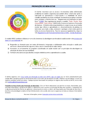 o objetivo primordial do Distrito de aprimorar o desempenho do aluno, a diretriz da Força-tarefa para Promoção do Bem-Estar é