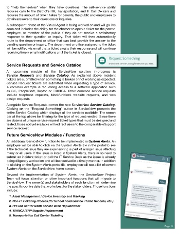 reduces calls to the District’s HR, Transportation, and IT Call Centers and