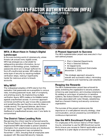 MFA has emerged as a vital shield for • Pilot in Selected Departments
