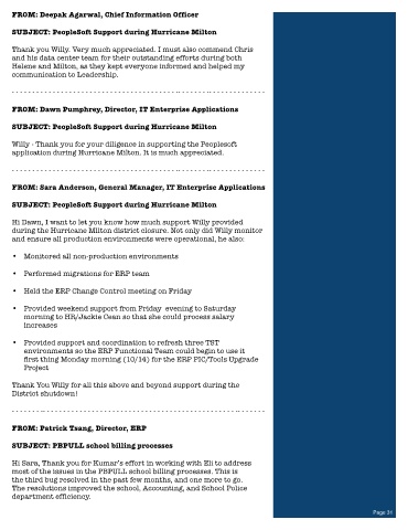 SUBJECT: PeopleSoft Support during Hurricane Milton