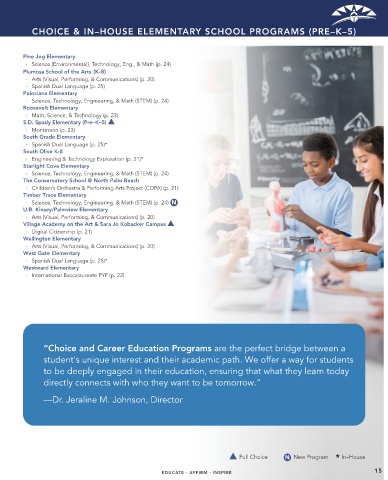 CHOICE & IN–HOUSE ELEMENTARY SCHOOL PROGRAMS (PRE–K–5)