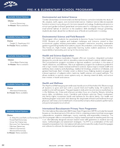 In–House: None available Health, Medicine, and Wellness. This is an exploratory program for students in grades K-5