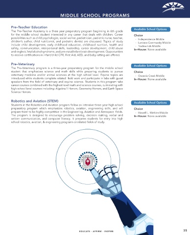 The Pre–Veterinary program is a three–year preparatory program for the middle school
