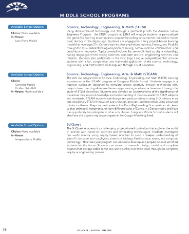 Available School Options Science, Technology, Engineering, Arts, & Math (STEAM)