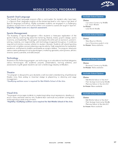 *Eligibility: Qualifying audition score required for Bak Middle School of the Arts. · Palm Springs Community Middle