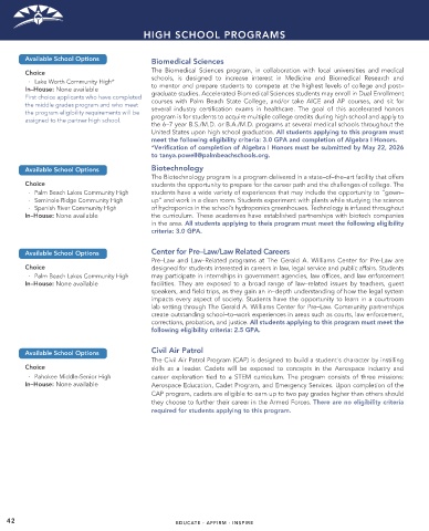 the middle grades program and who meet courses with Palm Beach State College, and/or take AICE and AP courses, and sit for