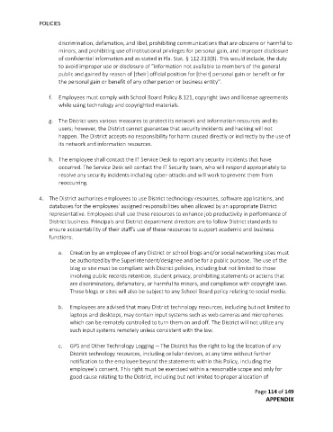 f. Employees must comply with School Board Policy 8.121, copyright laws and license agreements