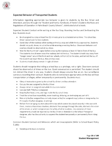 Expected Student Conduct while waiting at the Bus Stop, Boarding the Bus and De-Boarding the