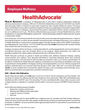Health Advocate provided over 3,155 hours of service in FY22 for District employees and their families. The