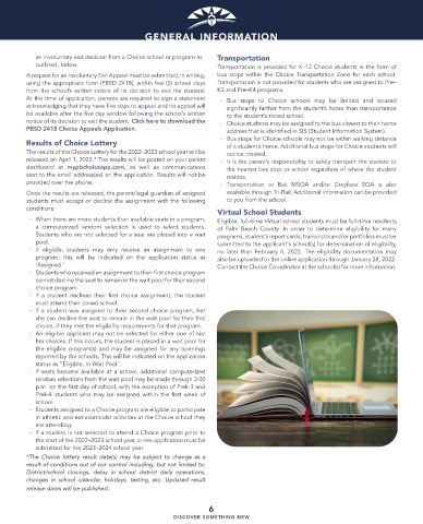 outlined, below. Transportation is provided for K–12 Choice students in the form of