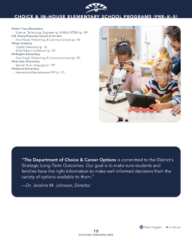 CHOICE & IN–HOUSE ELEMENTARY SCHOOL PROGRAMS (PRE–K–5)