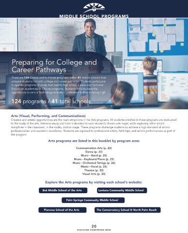 to the study of the arts. Intensive study and time is devoted to each student’s chosen arts major, while exploring other artistic