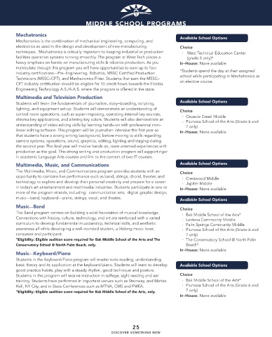 *Eligibility: Eligible audition score required for Bak Middle School of the Arts and The · The Conservatory School @ North Palm