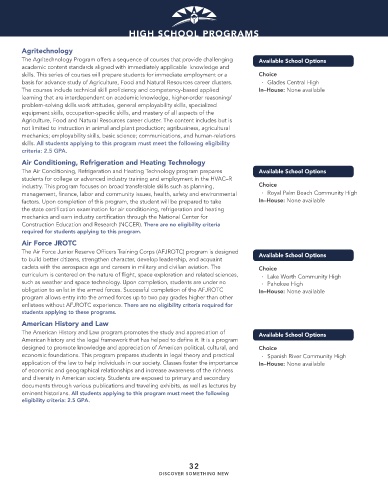 curriculum is centered on the nature of flight, space exploration and related sciences, · Lake Worth Community High