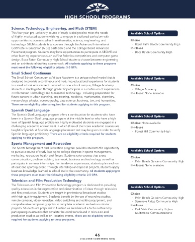 Placement program. Students may have opportunities to participate in SECME and · Boca Raton Community High