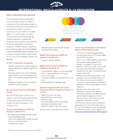IB in the School District of Palm Beach Programme (CP) for students in Grades 11 attendance zones for the other six