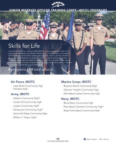 Junior Reserves Officer Training Corps (JROTC) programs emphasize skills for life