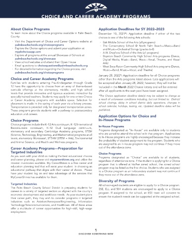 educational pathway that aligns with their career of choice. Please to a Choice program as an in-boundary student may not continue if